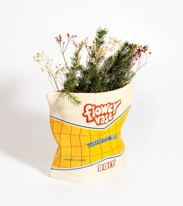 Le Vase Paquet de Chips : quand tes fleurs se régalent aussi ! Un clin d’œil fun et original pour un décor qui croustille.