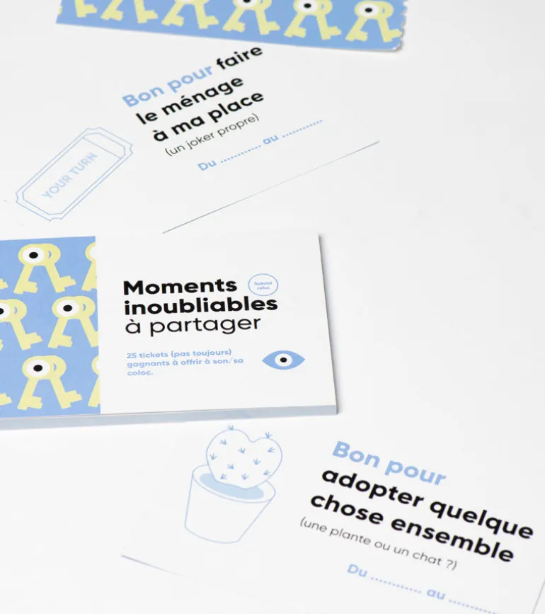 Assez des soirées moroses avec ton/ta coloc ? Offre-lui plutôt un chéquier rempli d’activités fun à faire ensemble ! Grâce à cela, vous allez passer des moments tellement géniaux que vous en oublierez les petites disputes pour savoir qui a mangé le dernier cookie (ou qui a oublié de vider la poubelle). Alors, prêt.e à devenir le/la coloc le/la plus cool de tous les temps en partageant des moments inoubliables ?