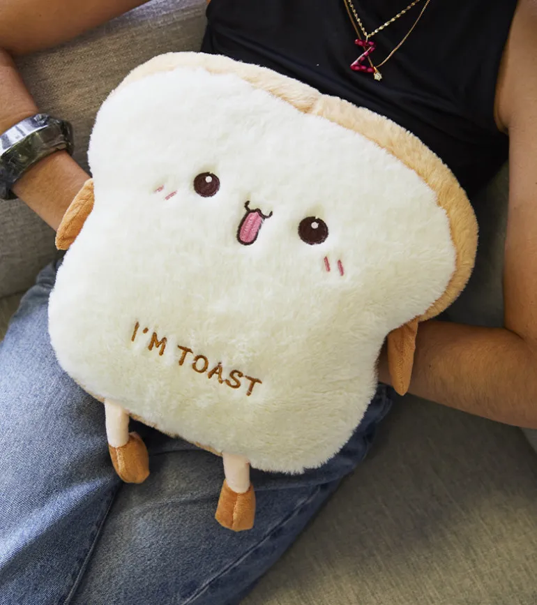 Lui, c’est Toast. Avec sa bouille adorable, il apporte une bonne dose de réconfort et de fun à ton canapé ou ton lit. Attention : risque élevé de câlins !