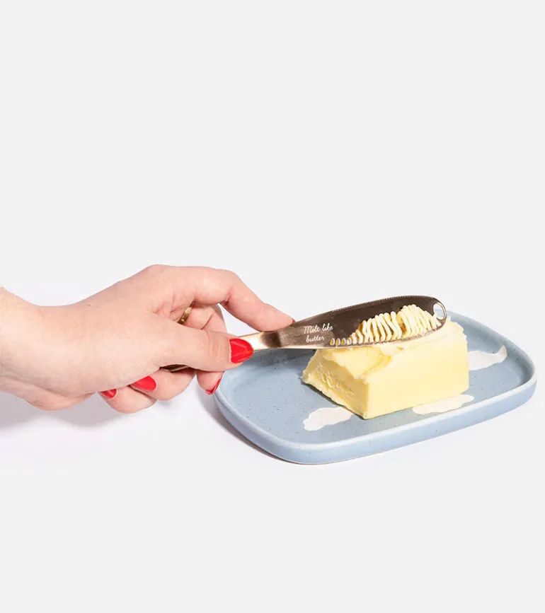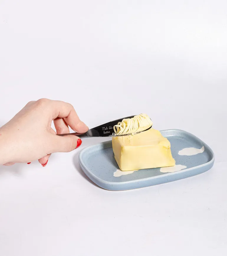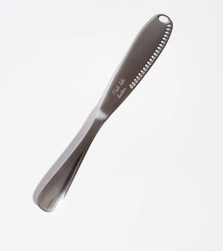 Cet incroyable couteau magique fait une véritable métamorphose : il change le beurre froid et dur en rubans doux et somptueux qui garniront gracieusement sur vos toasts sans les abîmer !