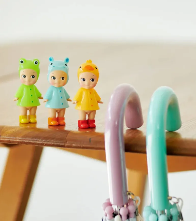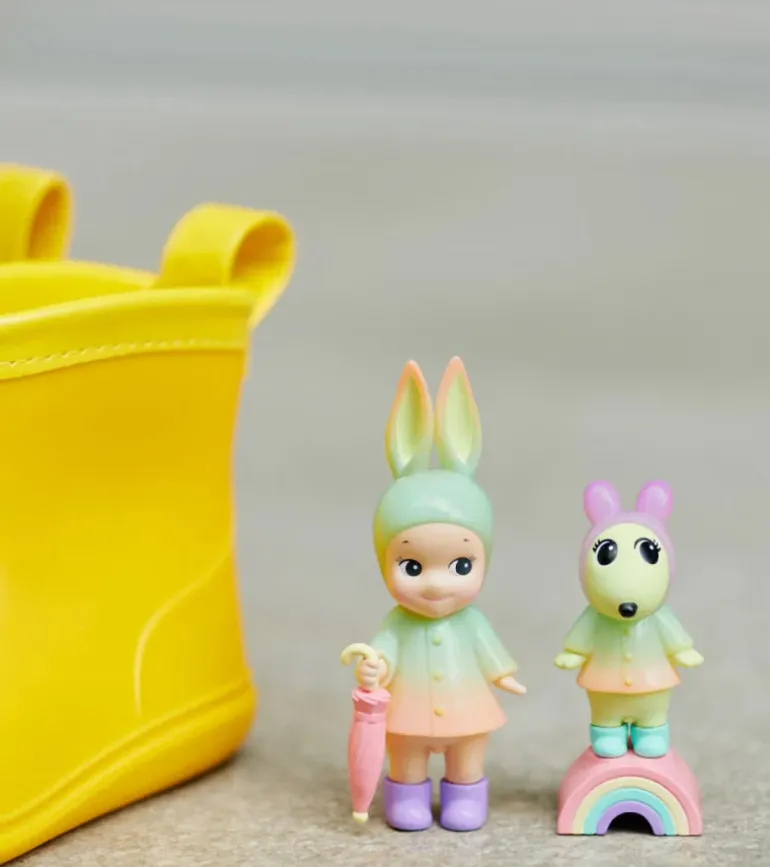 Sonny Angel en mode pluie : bottes, k-way, et cuteness à 100 %. Même la météo craque. 🌧️🧡
