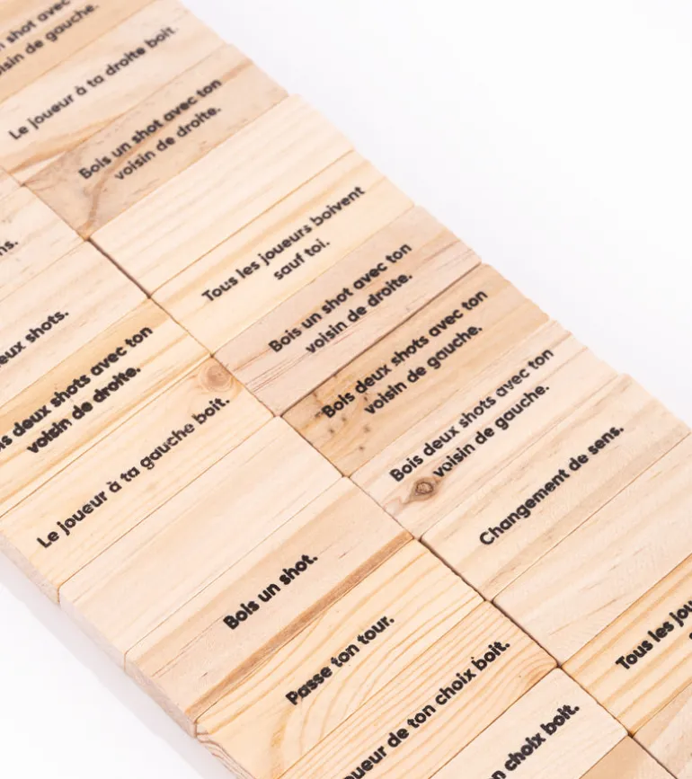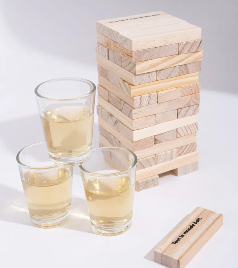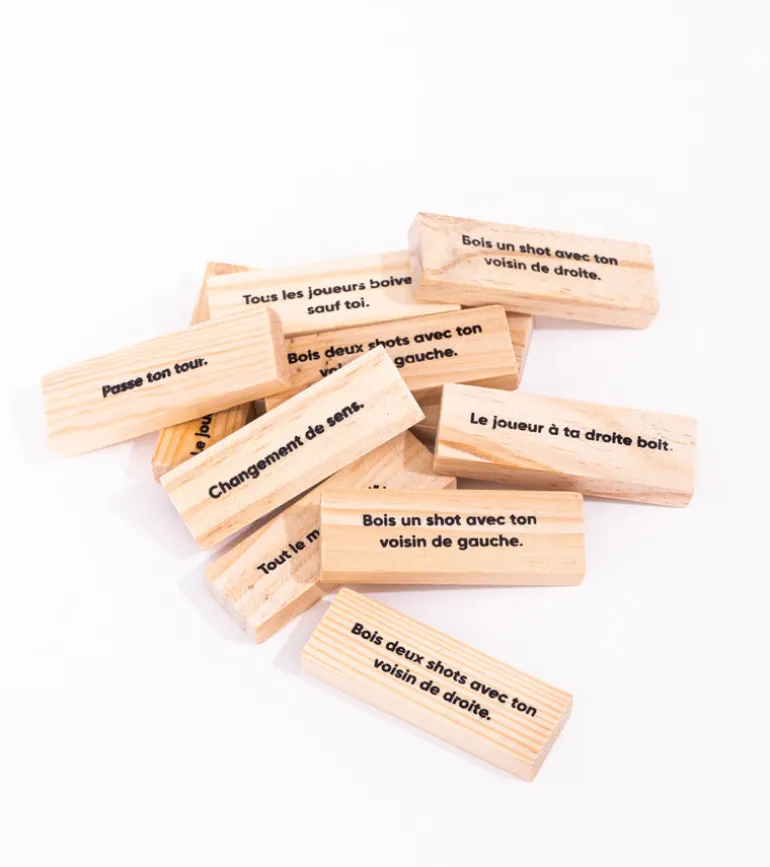 Revivez le meilleur jeu d’enfant : les kaplas, mais changez-le en version adulte. Sur chaque planchette est écrit une action à réaliser. Celui qui fait tomber la tour devra faire un cul sec (ou deux) !