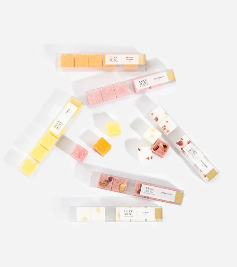 - Pamplemousse : Sucre de canne, huile naturelle de pamplemousse, acide citrique, acide tartrique, colorant naturel de betterave et colorant biologique d’orange.