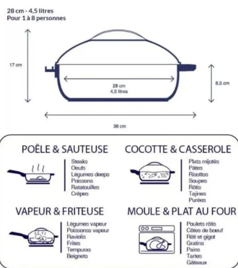 - Dimensions : 28 cm – 4,5 litres