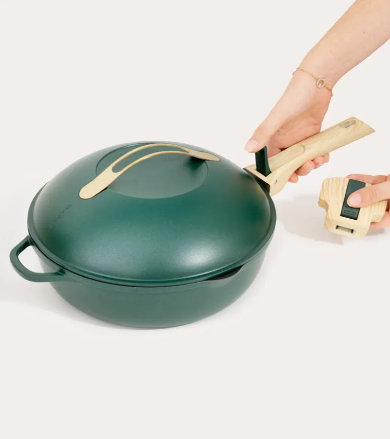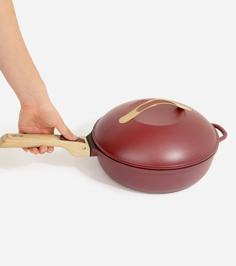 La Fabuleuse : la poêle 8 en 1 pour toutes vos envies culinaires ! Sautez, cuisez, faites frire, cuisez à la vapeur, rôtissez, et préparez même des gâteaux, tout est possible. Transformez-la en un plat à gratin grâce à ses poignées détachables. Livrée avec un panier vapeur et une spatule en bois pour des plats encore plus délicieux ! 🍳🍰👩🍳