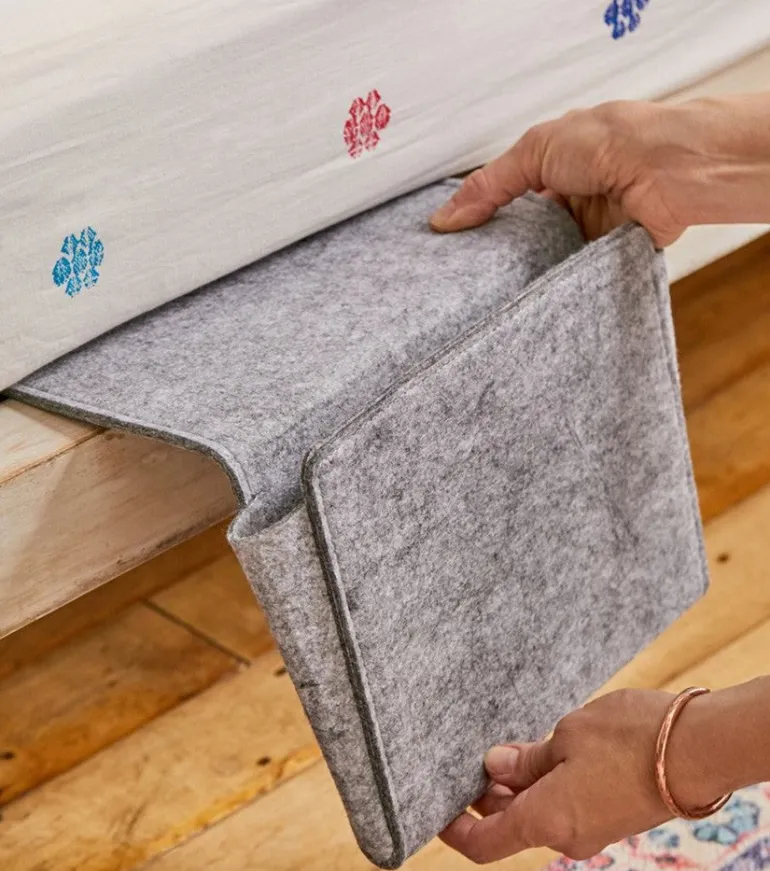 Vous n’avez pas de place pour une table de chevet, ou vous essayez de faire un gain de place dans votre chambre ? Adoptez donc la pochette de chevet, ultra pratique elle se fixe dans le cadre de votre lit et vous pourrez y glisser magazines, tablette, lunettes et plein d’autres petites choses.