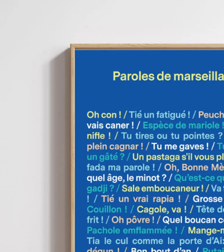 Ce poster de phrases cultes de Marseillais, c’est le coup de soleil assuré ! Parce que le parler marseillais, c’est comme une bouillabaisse : riche en saveurs, avec une touche d’accent qui fait tout son charme