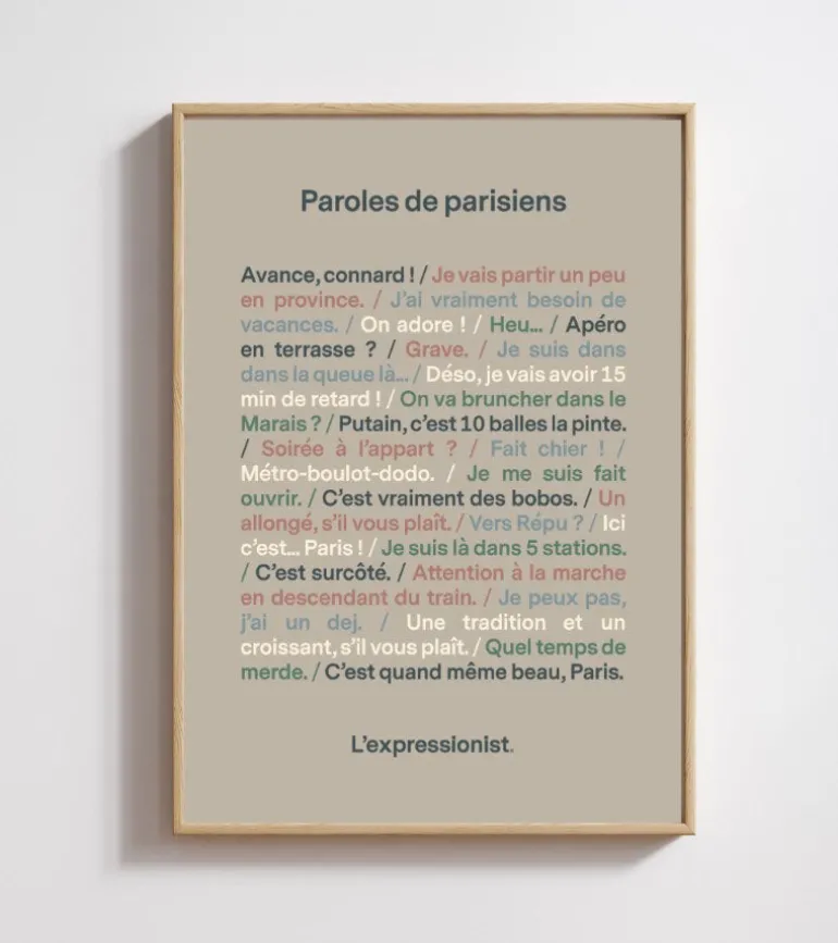 Plongez dans l’ambiance ‘cliché chic’ avec ce poster des phrases cultes de Parisien : l’art de râler avec style en deux répliques !