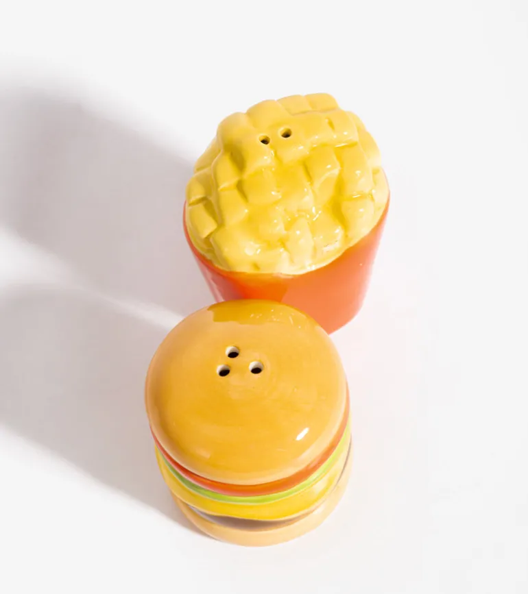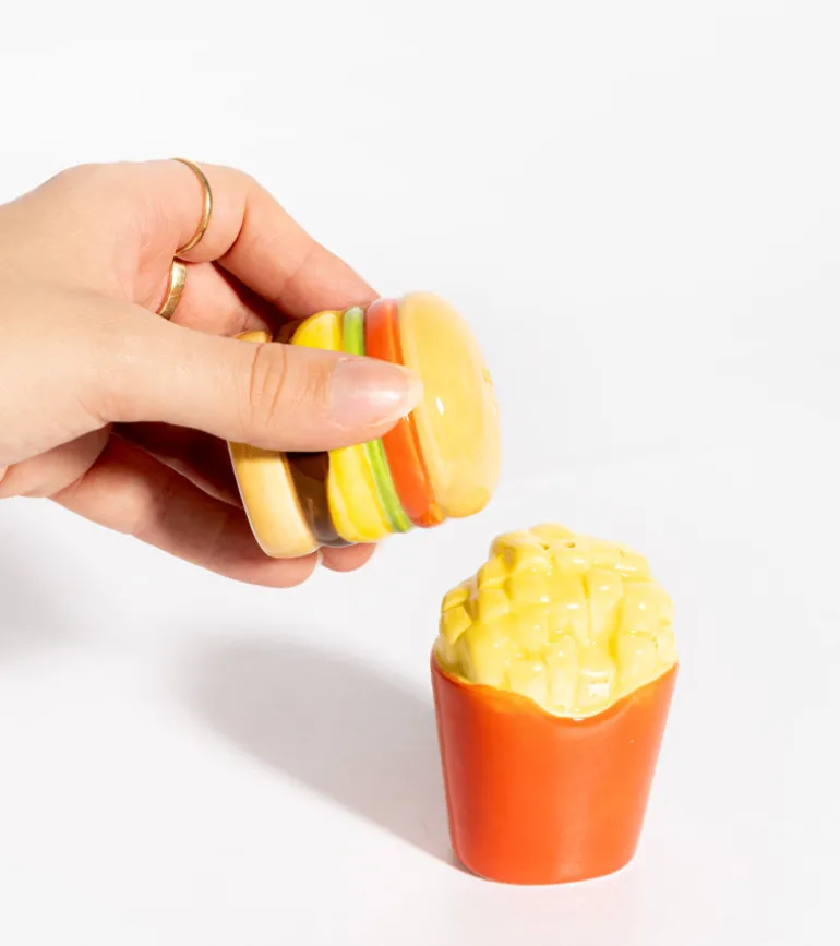 Apportez un goût unique à votre table avec ces salières et poivrière Fast Food. en forme de hamburger et de frites ! 🍔🍟