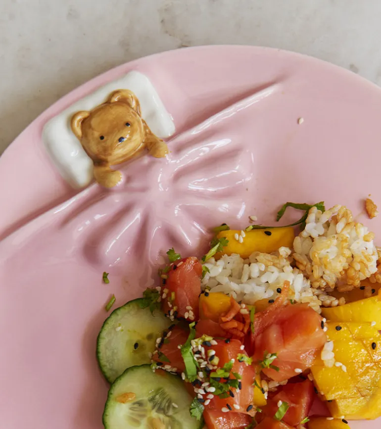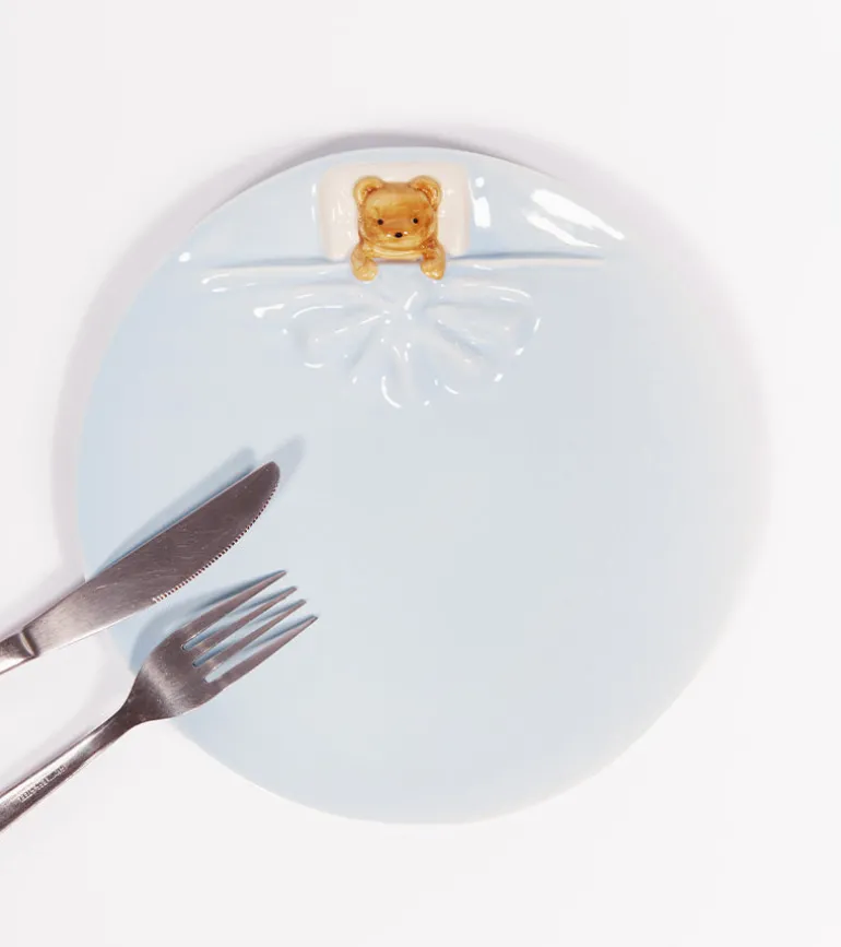 Deux assiettes, un ourson qui pionce, et zéro stress à table. Mood : chill & cute. 🐻🍽️