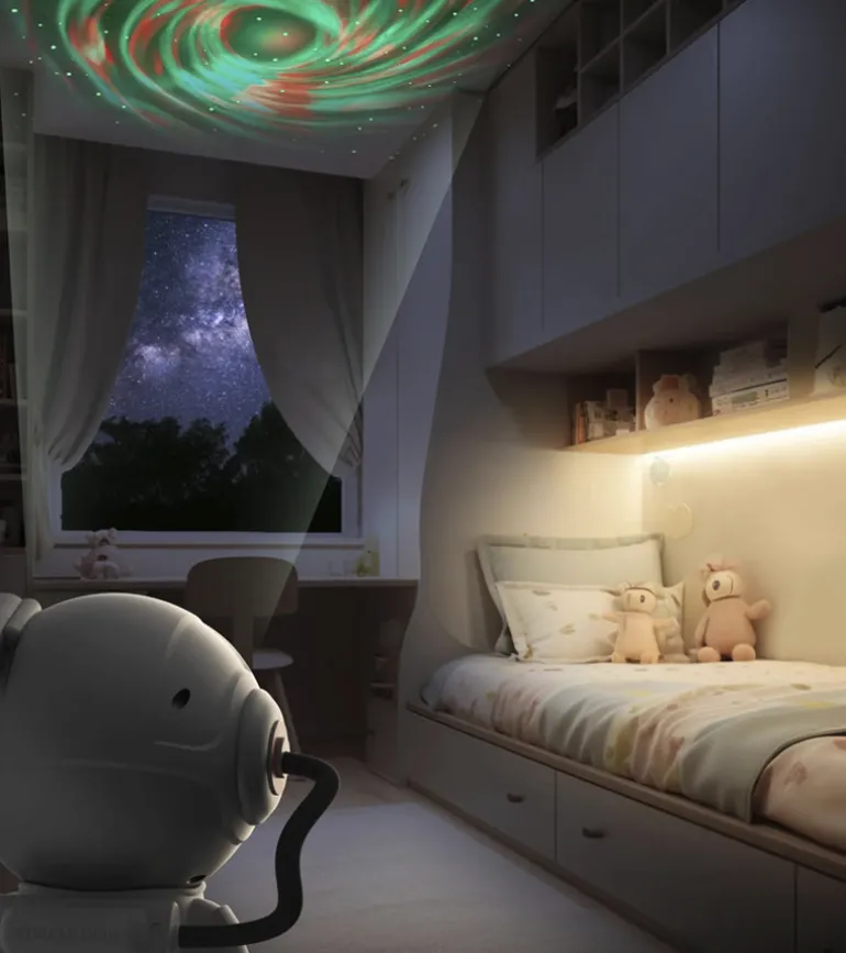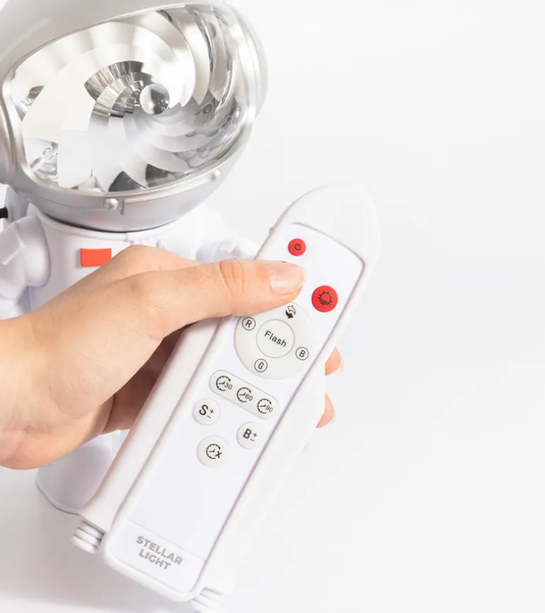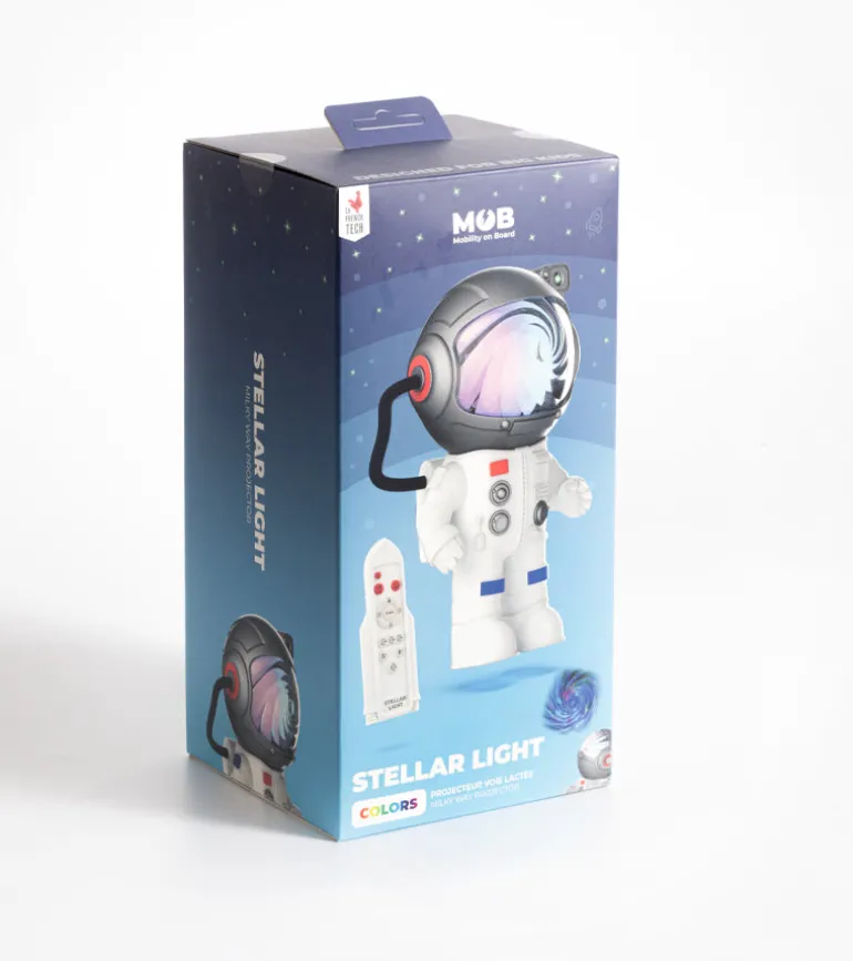 Après le succès de la Galaxy Light, découvrez la Stellar Light : un astronaute stylé qui projette une voie lactée animée et colorée, avec une lune apaisante pour petits et grands rêveurs ! 🌌✨ Sa tête pivotante à 360° et sa télécommande rendent l’expérience encore plus magique. Un must-have pour une chambre cosmique ! 🚀🌙