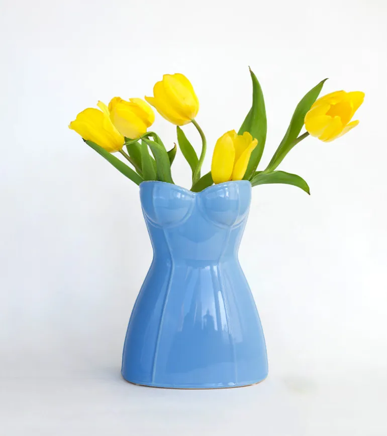 Un vase qui met tes fleurs en valeur avec une touche rétro et sexy ! Inspiré d’un corset d’époque, son bleu profond et ses courbes sculptées ajoutent une dose de charme et d’élégance à ta déco. 💙✨