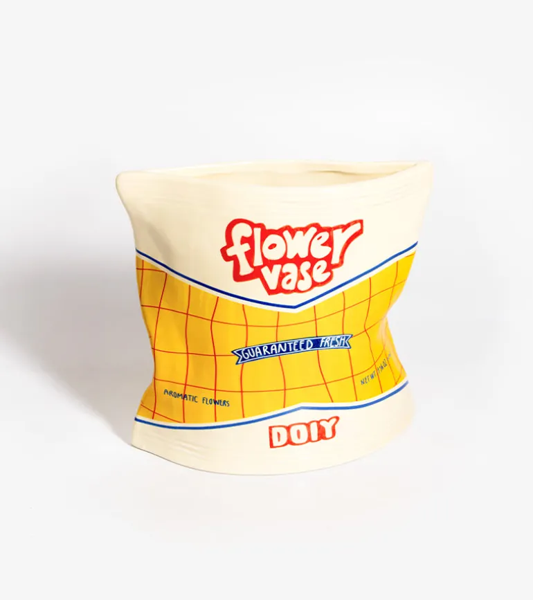 Le Vase Paquet de Chips : quand tes fleurs se régalent aussi ! Un clin d’œil fun et original pour un décor qui croustille.